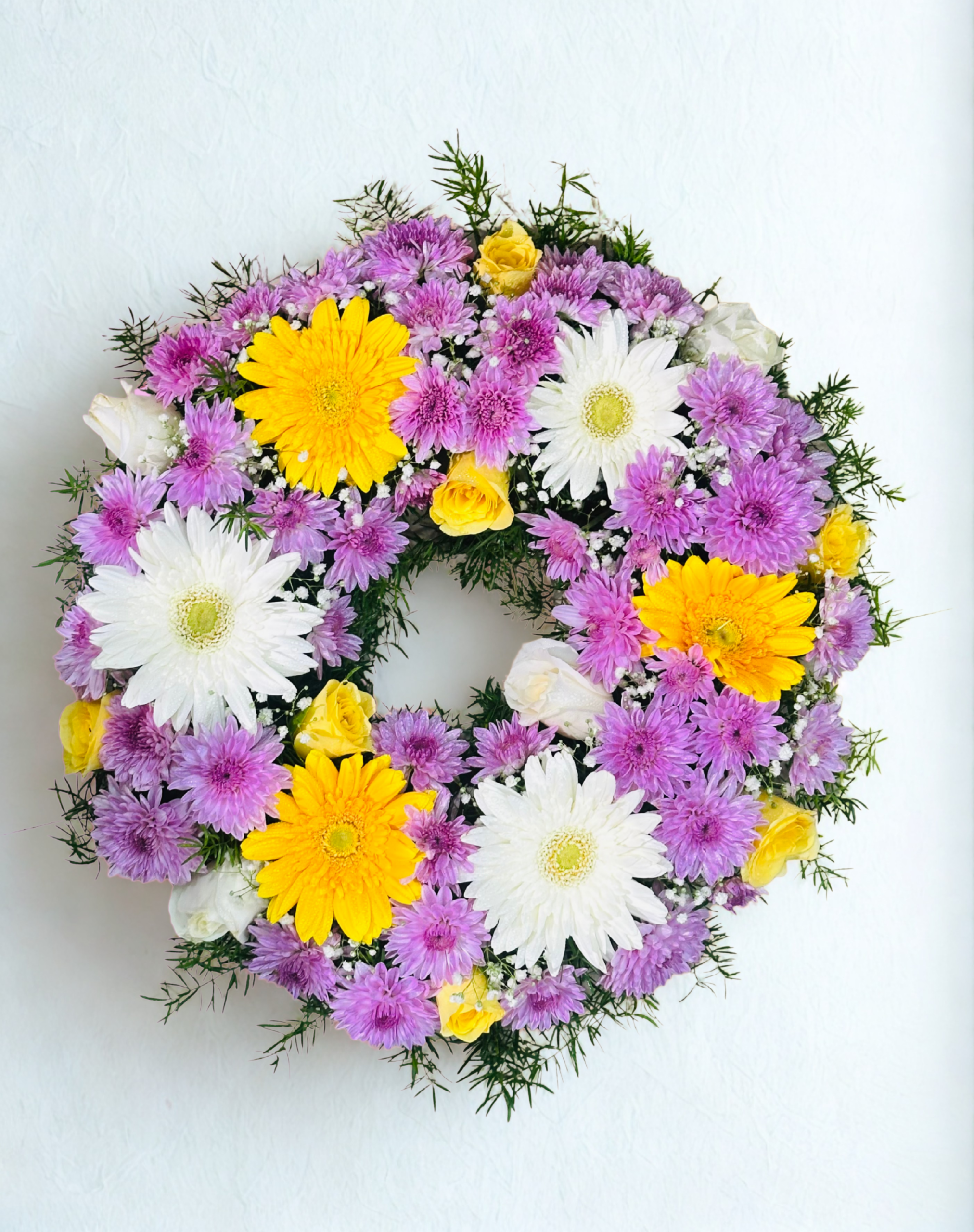 💐 Purple, White & Yellow Mixed Flower Wreath